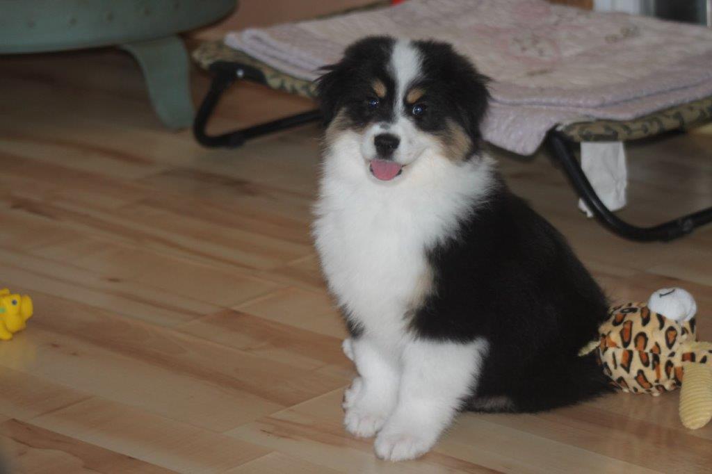 Cheer’s is a beautiful black tri female. She has a very sweet personality, loves people, kids, and gets along well with other puppies/ dogs.