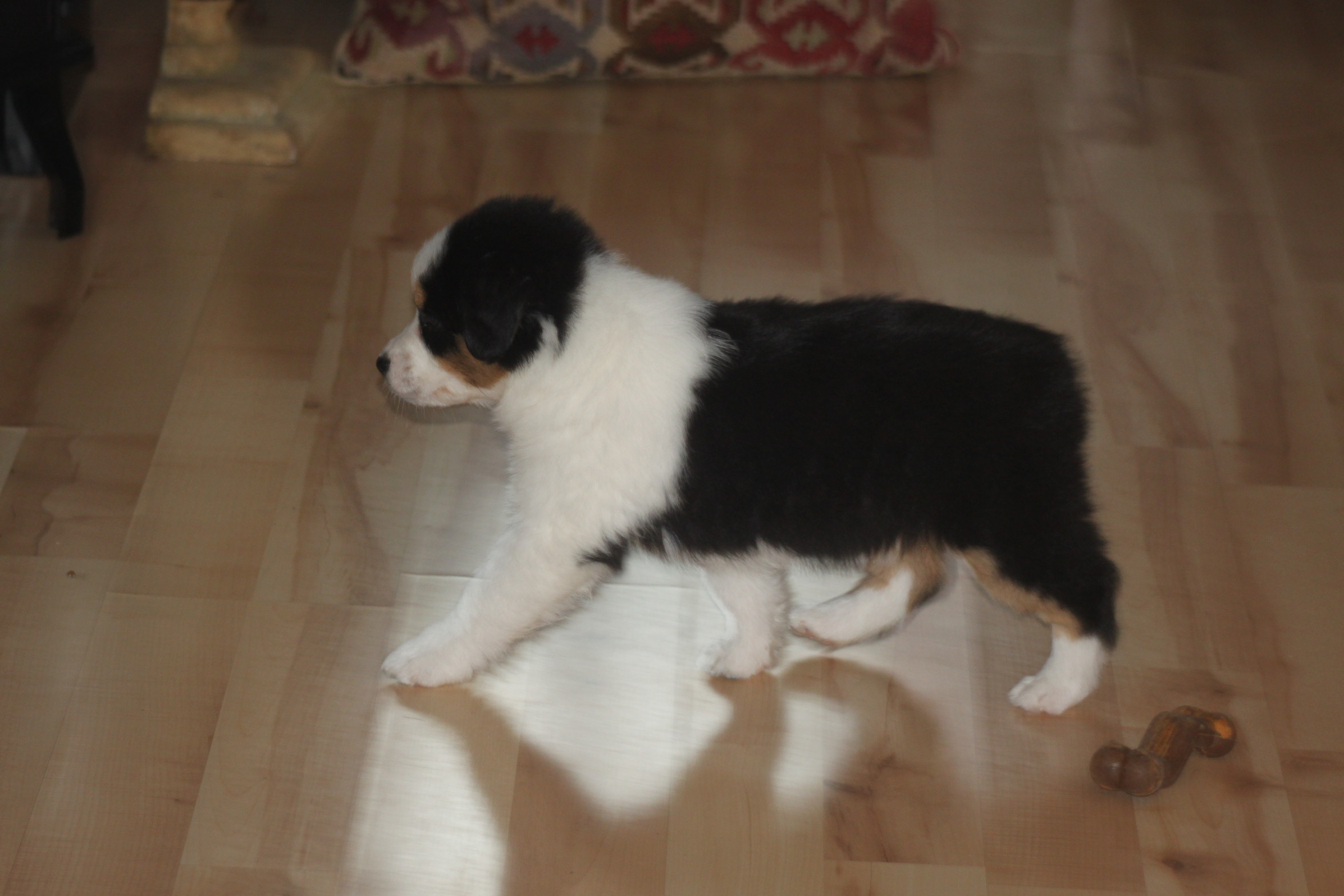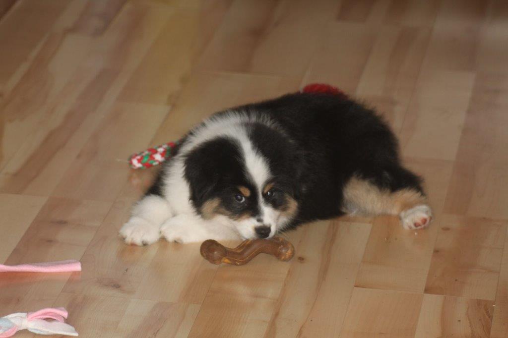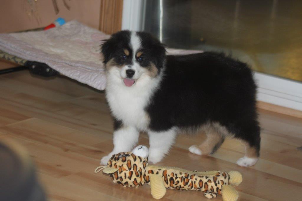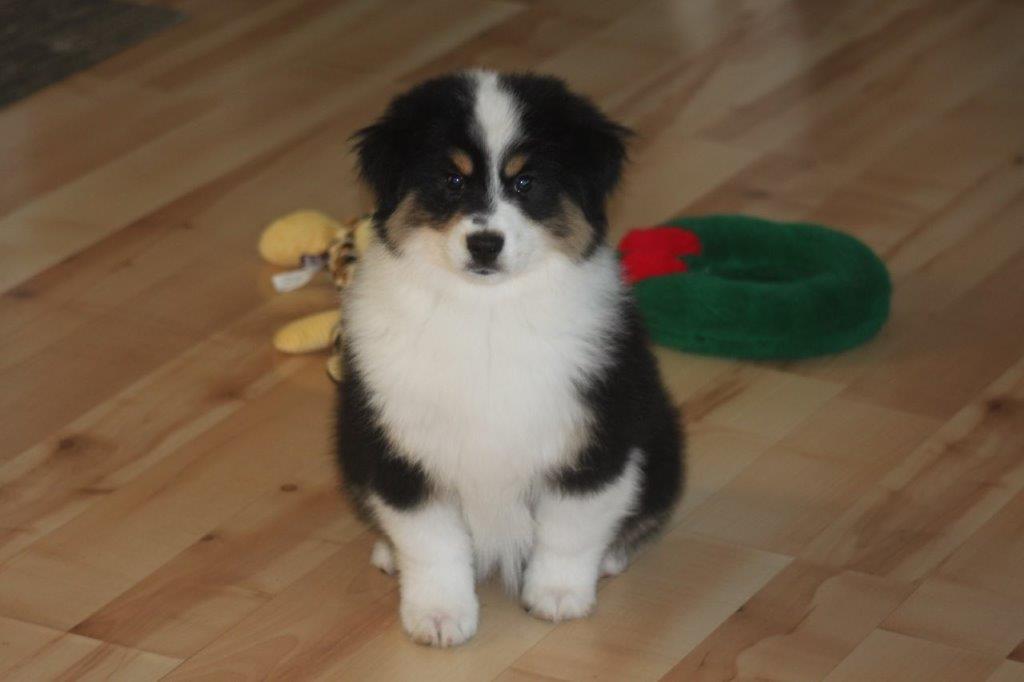 Cheer’s is a beautiful black tri female. She has a very sweet personality, loves people, kids, and gets along well with other puppies/ dogs.